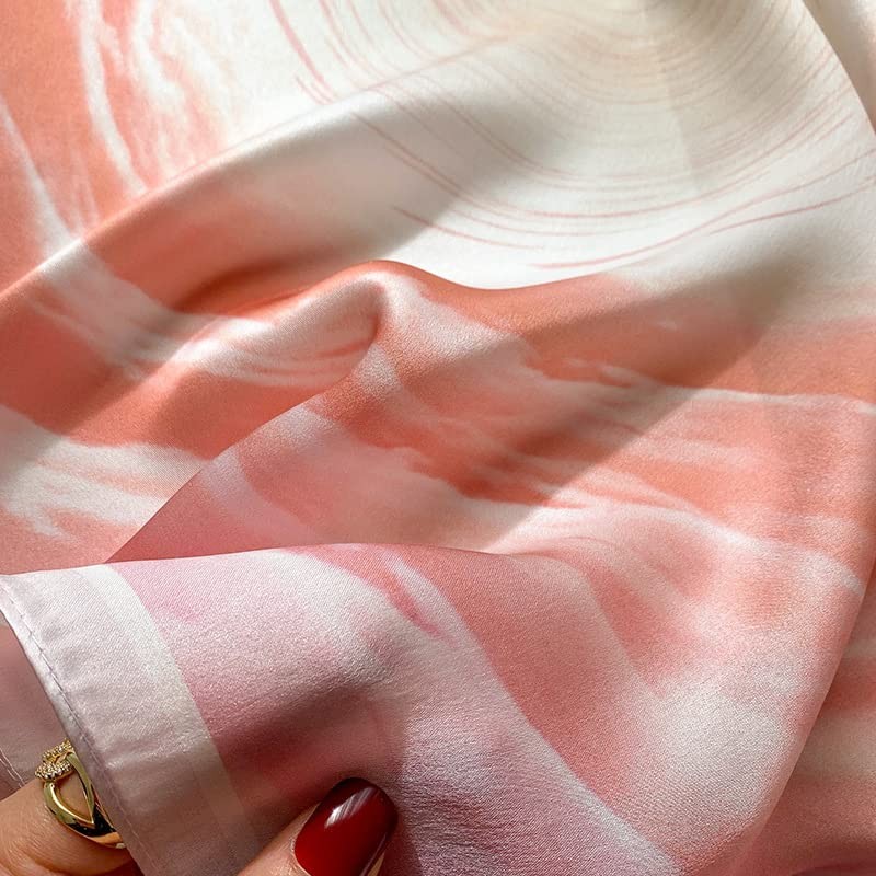 MEISEE 100% Mulberry Silk Scarfs Small Square Scarf 21" x 21" Neck Scarf Breathable Lightweight for Women Gift Packed (23-Pink+white)