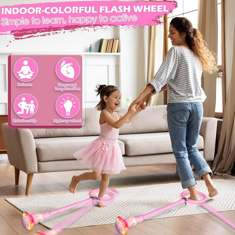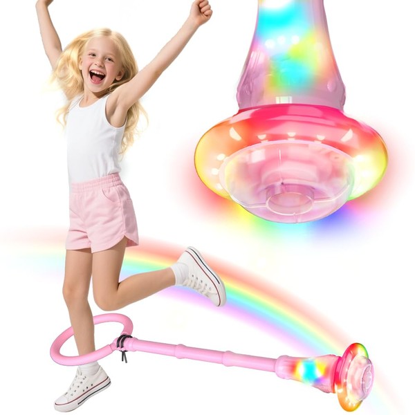 MEISHANG Swing Wheel with Light Wheel, Children's Flashing Jump Ring, Children's Flashing Jump Ring, Foot Gyro, Jumping Ball Flashing, Foldable Flash Jumping Ball, Flashing Jump Ball (Pink/1/1)