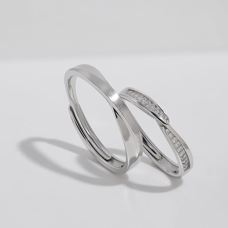 Meissa Adjustable Promise Rings for Couples Sterling Silver Matching Wedding Bands Interwined Couples Ring Sets for Men and Women Adjustable Twist Engagement Statement Promise Ring, 2.9mm Width
