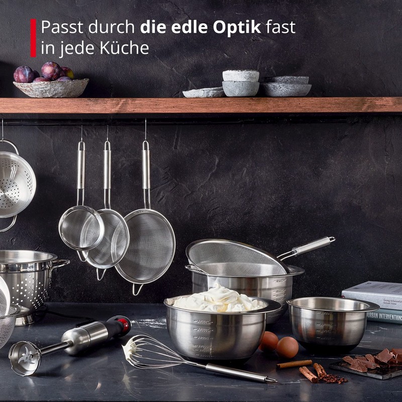 - Perfect for your kitchen: This mixing bowl from Meisterkoch is the perfect multifunctional helper for any kitchen. The simple and elegant design integrates directly into your kitchen. In addition to the currently selected size, you also have the options to purchase two wide sizes to complete the bowl set.