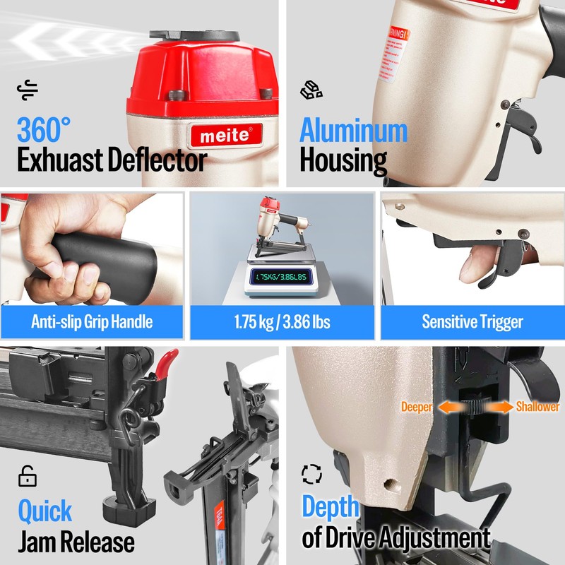 meite T64A Pneumatic Finish Nailer 16 Gauge 1-1/4 Inch to 2-1/2 Inch Air Finish Nail Gun for Cabinetry Fine Finish Applications