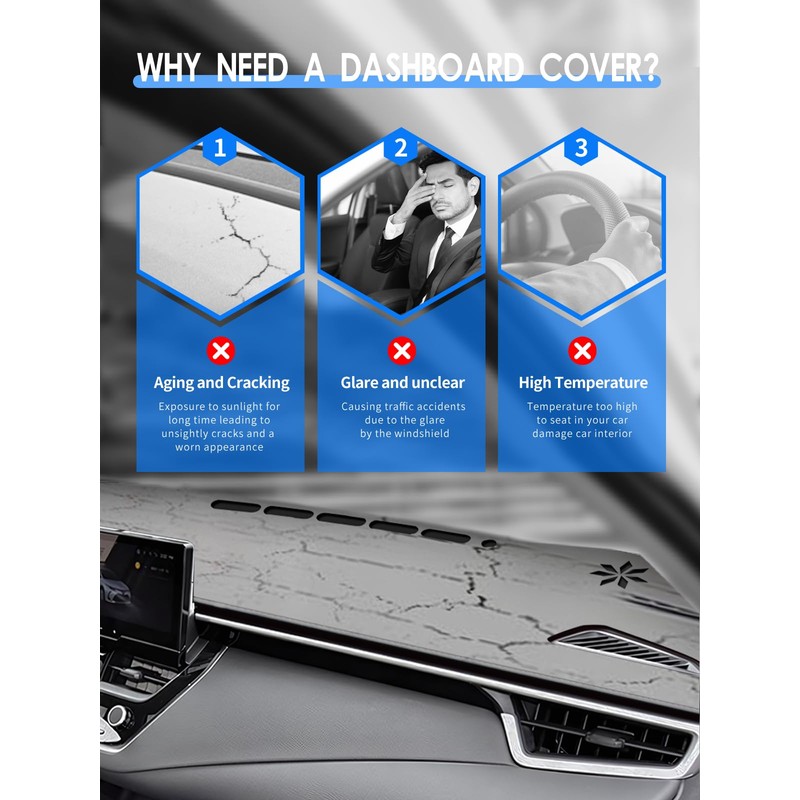 - Enhanced Safety and Visibility: Dashboard Protector by minimizing glare and reflection on the windshield, Dash cover not only protects your dashboard from dust and debris but also improves driving visibility, Promoting safer journeys