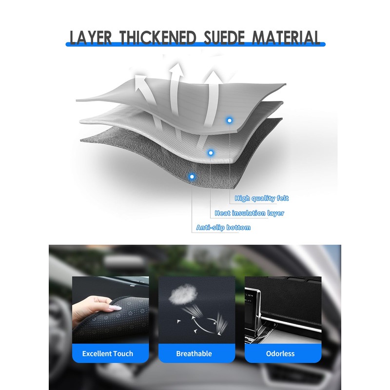 - Permium Material: Dashboard cover mat made from high-quality microfiber suede, Mekdghro dashboard mat offers a soft touch and odorless. Its durable construction is designed to with stand daily wear and tear while providing long-lasting protection