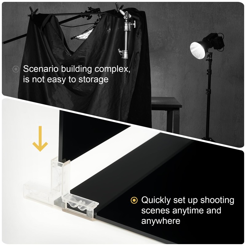 • Matt and Reflective Design: The matte side absorbs stray light and suppresses reflection,The reflective side creates a clear reflection,outlining the product's profile and enhancing its 3d effect,Make the photo present a stable and advanced texture