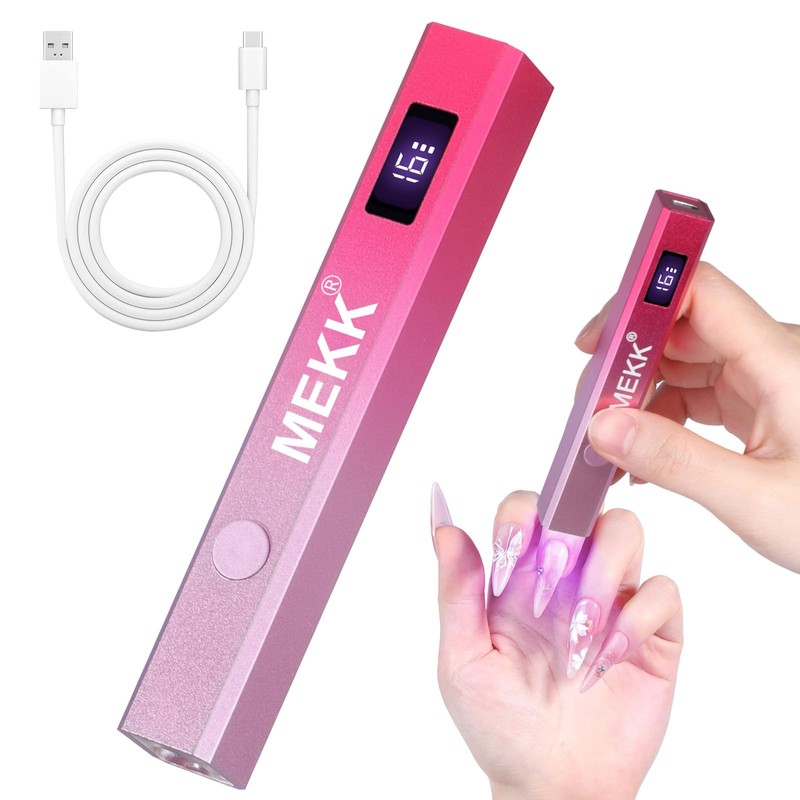MEKK Metal Handheld UV Light for Gel Nails,Mini UV LED Nail Lamp with LED Screen and USB-Powered Flash Cure Lamp with Visible Timer,Portable Cordless Nail Light - Pink