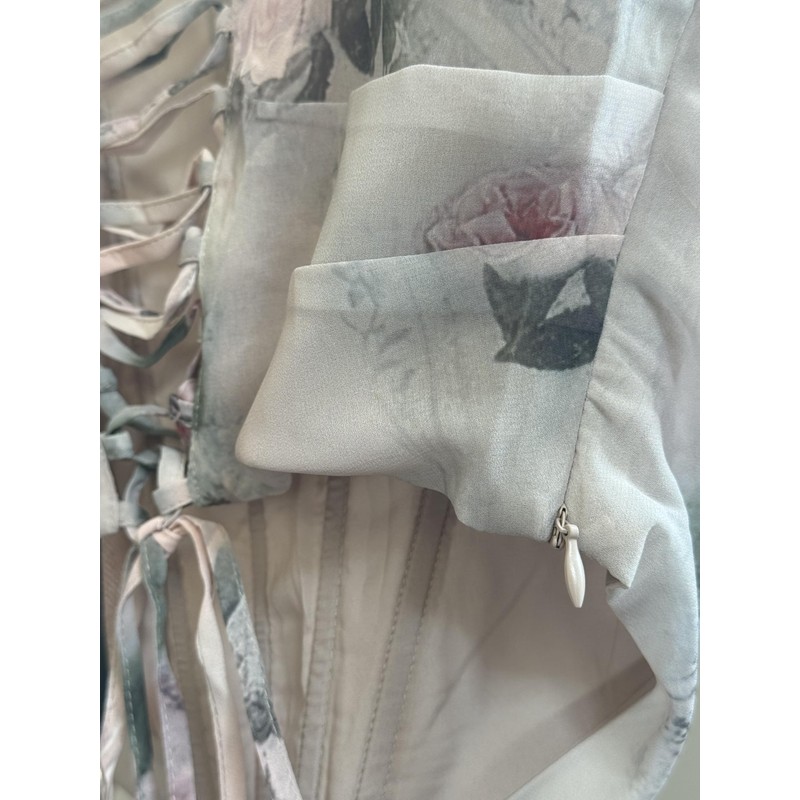 Mekong Delta Lush Intentions Corset Two Piece Summer High Slit Dress (US, Alpha, Small, Regular, Regular, Green)