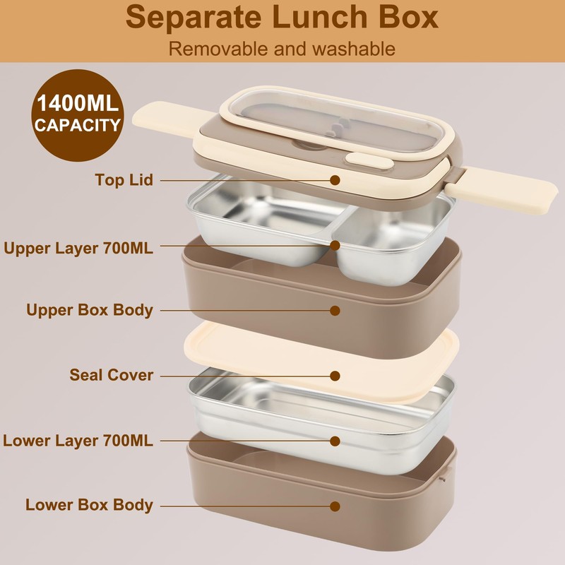 - Spacious Capacity & Versatility : Our bento lunch box features a generous 1400ML dual-layer design with compartments, great for separating various dishes while maintaining their unique flavors, versatile for both kids and adults