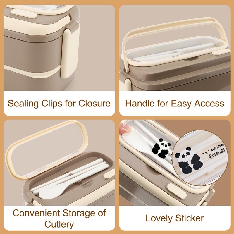 MEKOTRIN Bento Lunch Box 1400ML 2 Layer Lunch Box with Compartments, Food Container with Lunch Bag Cutlery Set for School Kindergarten Office Kids Adults(Khaki)