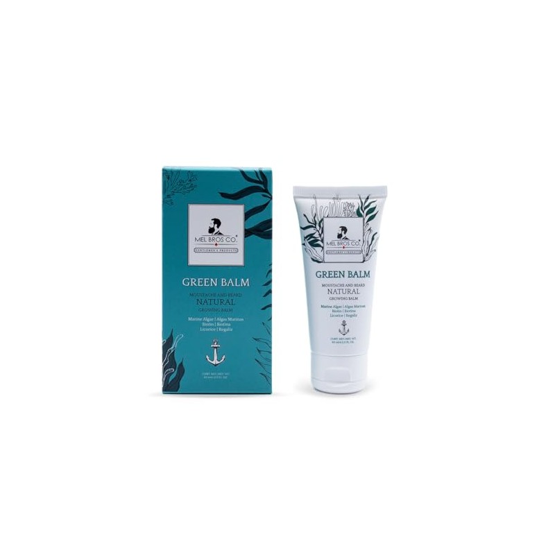 MEL BROS CO. - GREEN BALM Balsamo de Crecimiento de Barba Biotina, Regaliz, Bergamota y Algas Marinas (2 oz 60 ml) Estimula Crecimiento Natural de