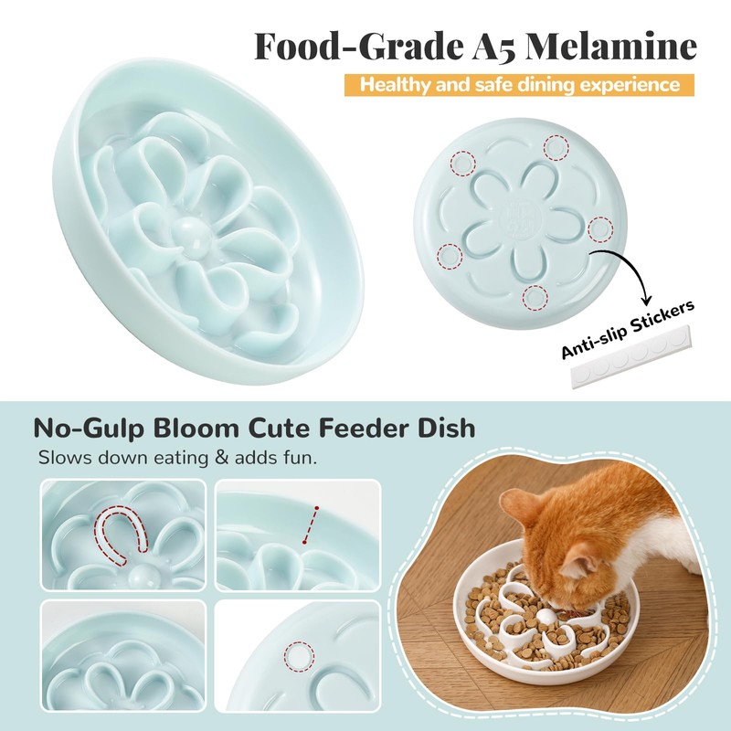 - Safe Design with Gentle Details - Crafted from food-grade melamine, the slow feed cat bowl is non-toxic, smooth, and gentle on your cat’s nose, tongue, and mouth.
