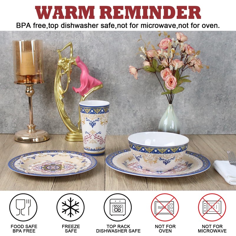 Melamine Dinnerware Set for 4-16 Pcs,Camping Dishes Set with Dinner Plates,Salad Plates,Bowls and Cups.Lightweight and Unbreakable