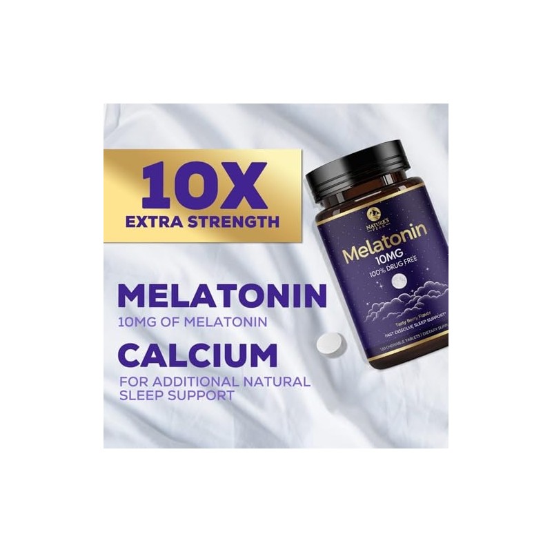 Melatonin 10mg Sleep Supplements for Adults - Max Strength, Fast Dissolve 10 mg Melatonin Tablets for Restful Sleep Support, Natural Strawberry Flavor, Sugar-Free, Non-GMO, Vegetarian - 120 Day Supply