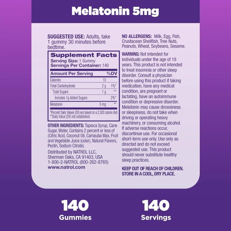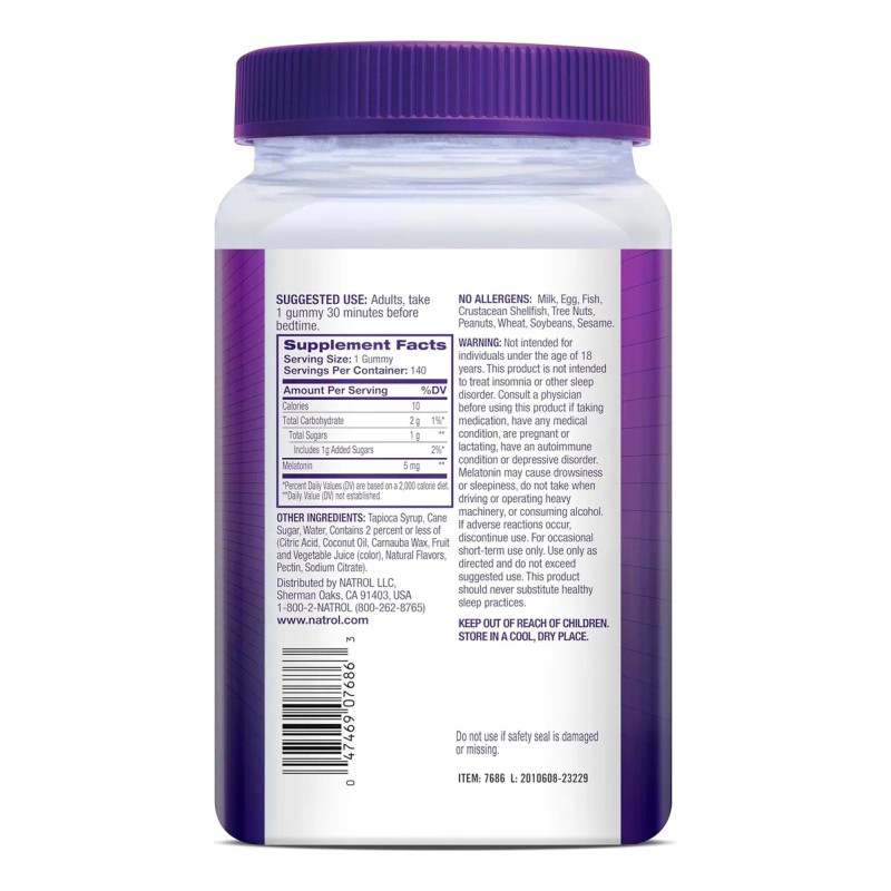 Melatonina Natrol 5 Mg | Tamaño Extra Grande | 180 Gomitas Sabor Fresa, Te Ayuda A Dormir Más Rápido, Quédate Dormido Más Tiempo Para Regula Los Ciclos De Día Y Noche O Los Ciclos De Sueño.