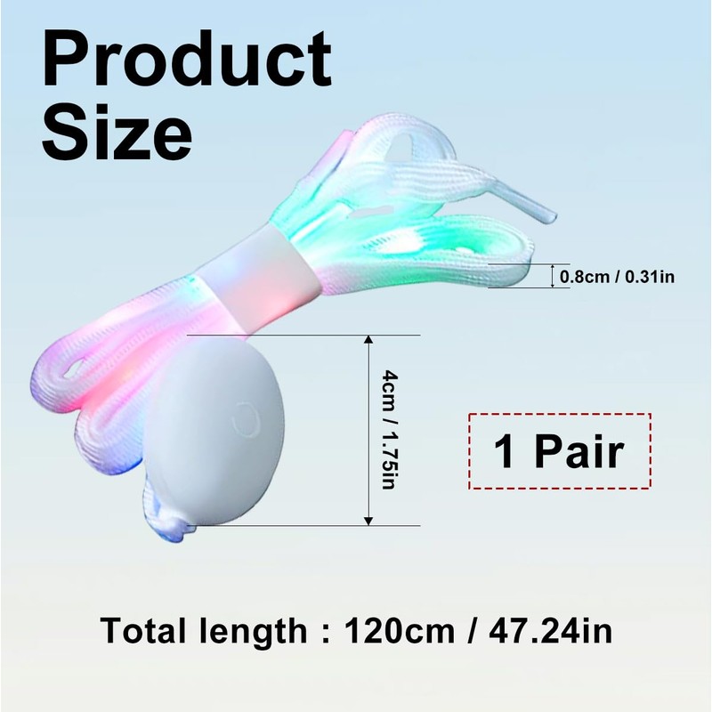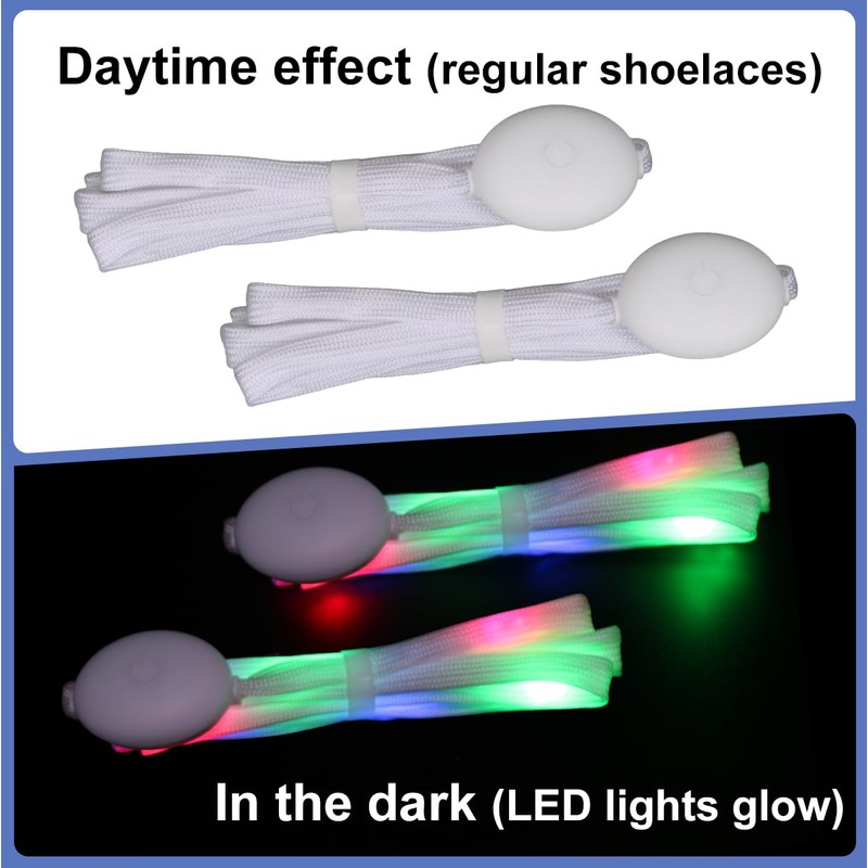 - LED laces are suitable for sports shoes, casual shoes, boots, etc. When the battery is exhausted, you can replace it with a new battery.
