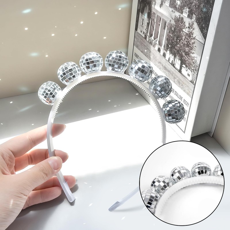 - The mirrored ball headband earrings come with reflective mirrors. The reflective surface makes the earrings sparkle like diamonds, making you shine on any occasion.