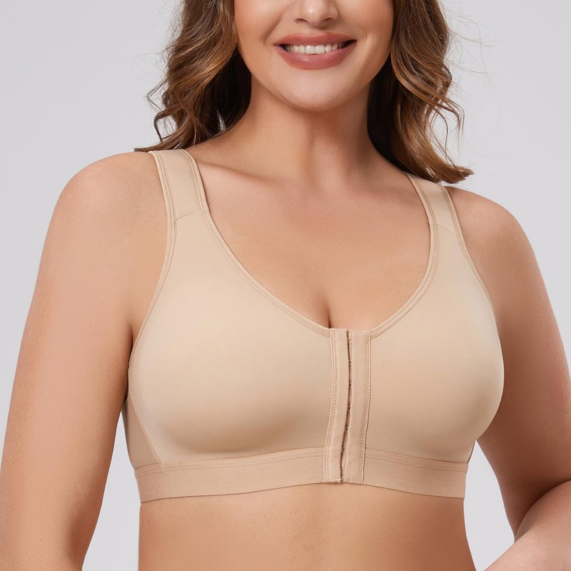 MELENECA Women's Front Closure Wirefree Post Surgery Plus Size Back Support Posture Bra Almond 36D