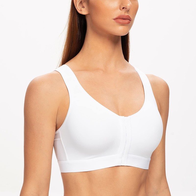 MELENECA Women's Front Closure Wirefree Post Surgery Plus Size Back Support Posture Bra White 42D