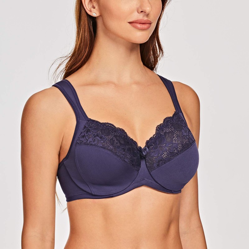 MELENECA Women's Full Coverage Underwire Bra Minimizer Plus Size Lace Comfortable Cushion Strap Blue 38C