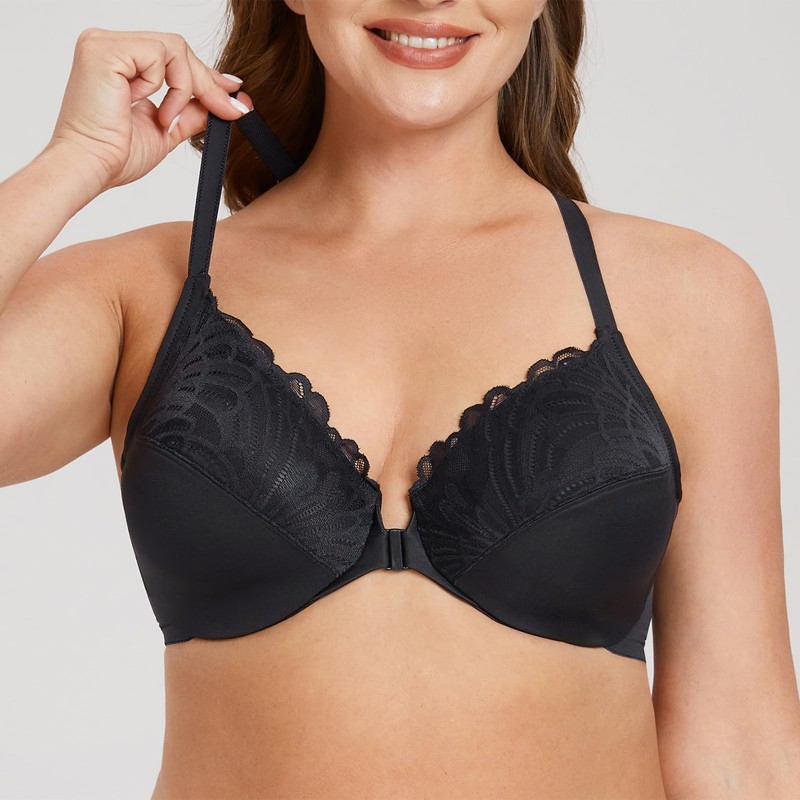 MELENECA Women's Racerback Front Closure Full Coverage Unlined Plus Size Underwire Bra Black 48E