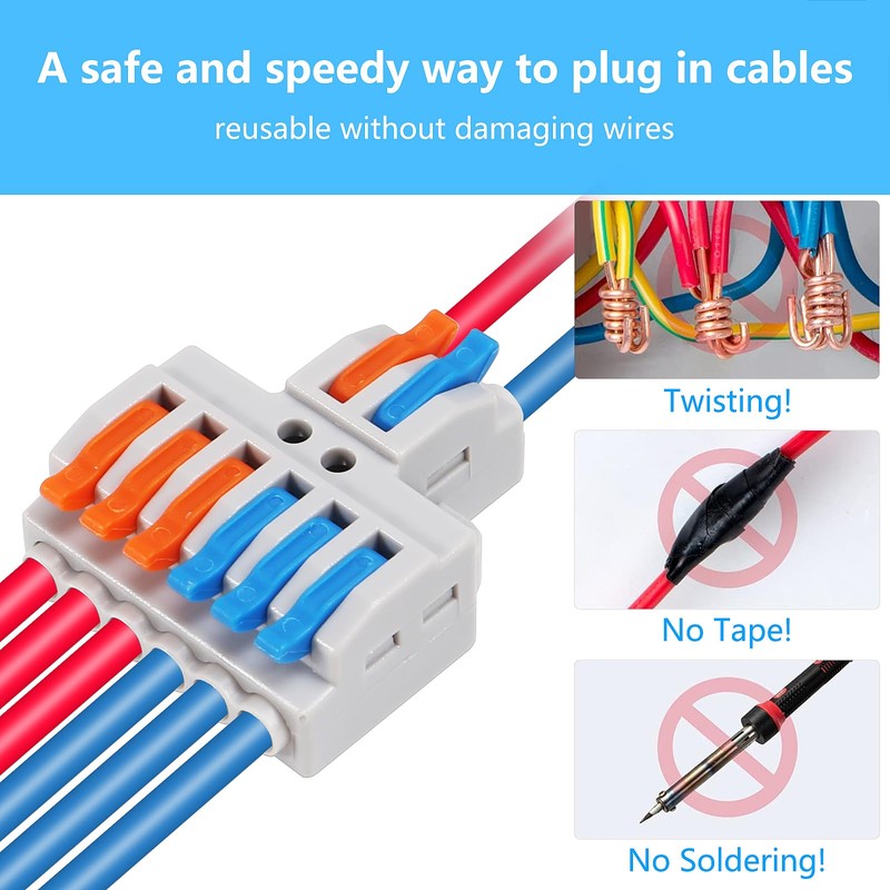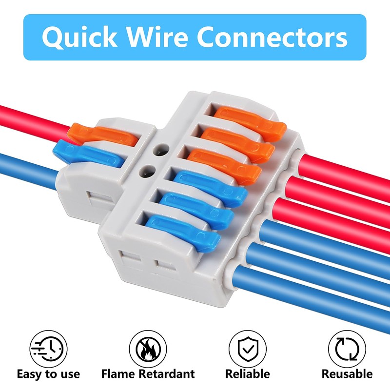 • WIDELY USED: Suitable for wire size 0.08~4mm²/AWG28-12. Used to connect braided and solid wires of various sizes, this connector is a versatile tool for various electrical applications, such as household wiring for ceiling fans, sockets, switches, vehicles, motorcycles, ships, loudspeakers, lamps, electrical boxes, chandeliers, light switches, fan controls, and more. With its compatibility to work with most household wiring, this connector is a must-have for those looking to make electrical connections easily and effortlessly.