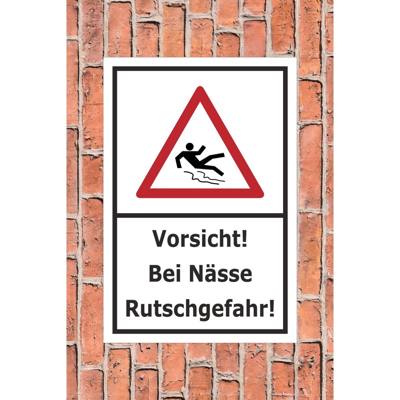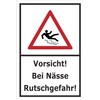 - Text of the sign: Vorsicht - Bei Nässe Rutschgefahr
