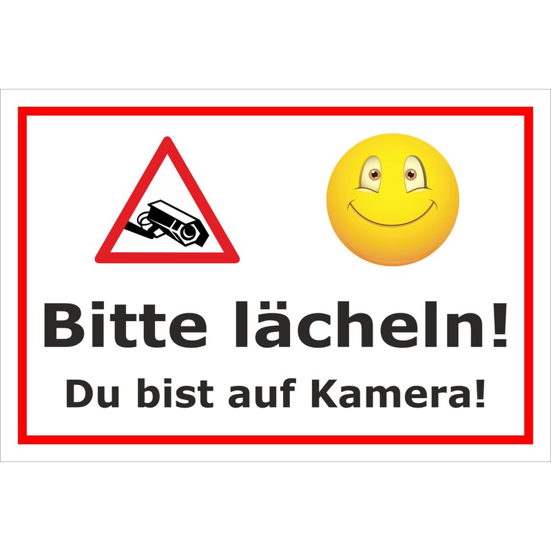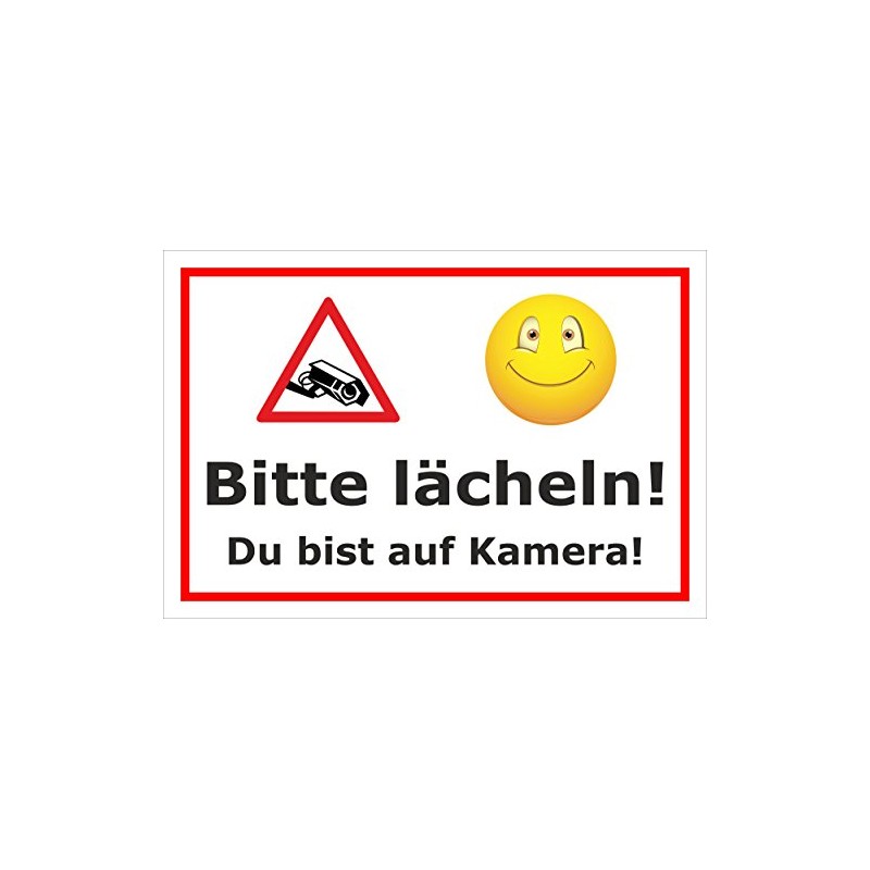 - Text of the sign: Achtung Videoüberwachung - Bitte lächeln - Du bist auf Kamera