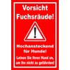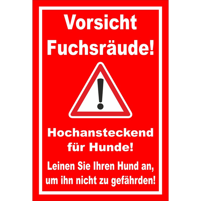 • Sign text: Vorsicht Fuchsräude - Highly contagious for dogs - leash your dog so as not to endanger it