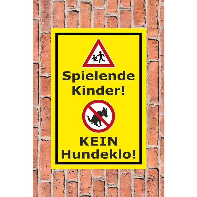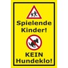 - Sign text: Spielende Kinder - Kein Hundeklo