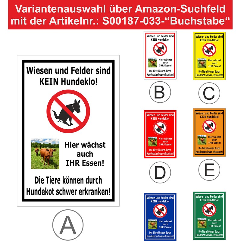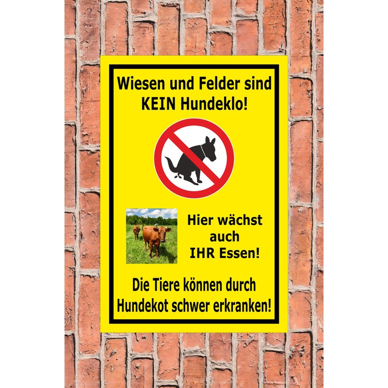 - Text of the sign: "Wiesen und Felder sind kein Hundeklo - Hier wächst auch ihr Essen - Die Tiere kann durch Hundepoop schwer erkanken
