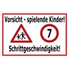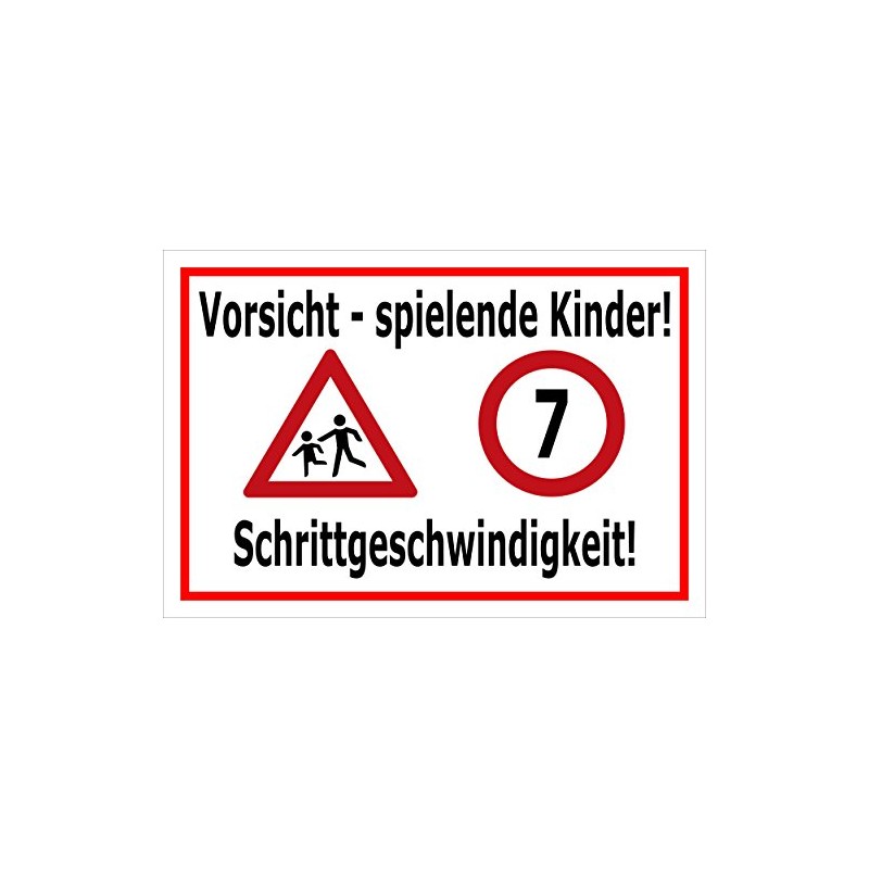 - Sign text: Vorsicht - Spielende Kinder - Schritt geschwindigkeit