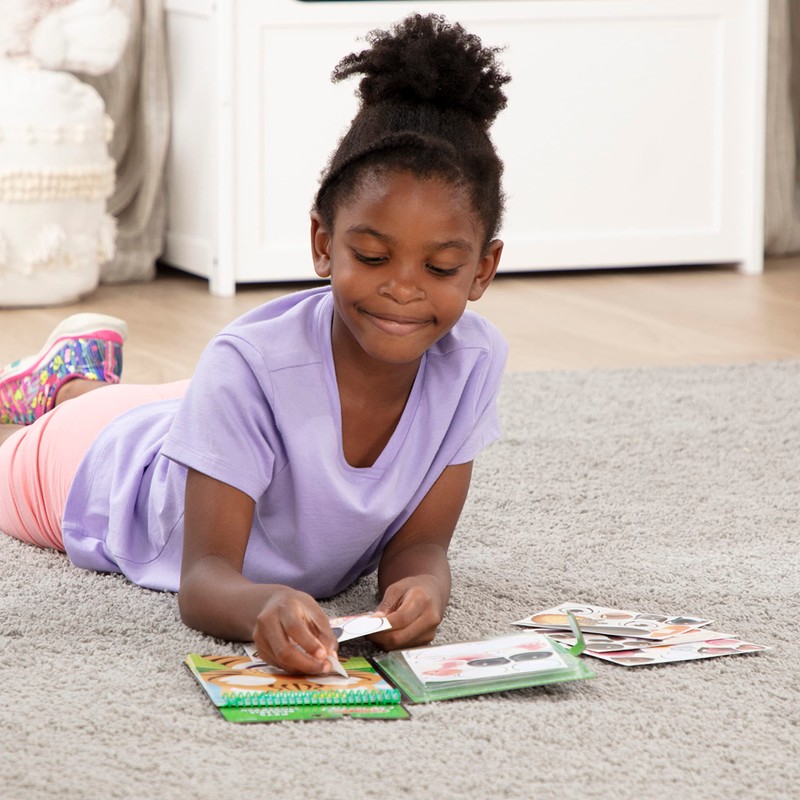 Peel and press reusable cling-style stickers to make adorable animal faces on full-color farm-, safari-, and pet-themed scenes! These three compact make-a- face pads with built-in sticker storage are spiral bound, making them the perfect travel activity for kids three and older. Use the included guide for placement Suggestions or mix and match to create silly creatures again and again! Each pad includes 65 or more Reusable stickers (eyes, noses, mouths, and more) And 10 scenes to complete. For more than 30 years, Melissa & Doug has created beautifully-designed imagination- and creativity-sparking products that NBC news called “the gold standard in early childhood play.” we design every toy to the highest-quality standards, and to nurture minds and hearts. If your child is not inspired, give us a call and we'll make it right. Our phone number is on every product!