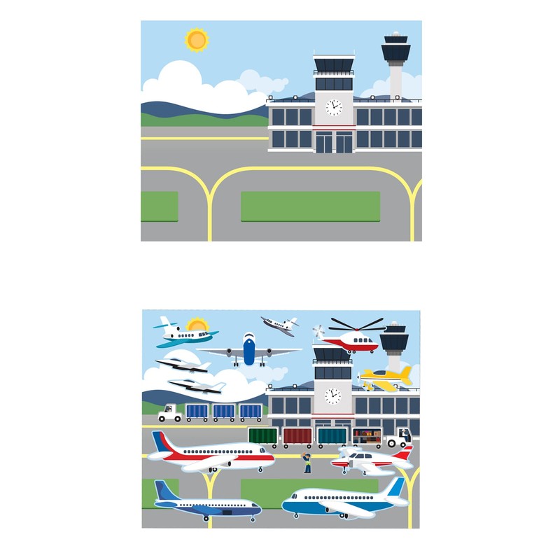 - MELISSA AND DOUG REUSABLE STICKER PAD - This vehicle themed reusable sticker book includes 165 easy peel stickers for toddlers to get creative with, as well as 5 glossy, full-colour background scenes including a busy airport, train tracks, harbour, construction site, and roadway; the perfect travel sticker book for children who love vehicle stickers.