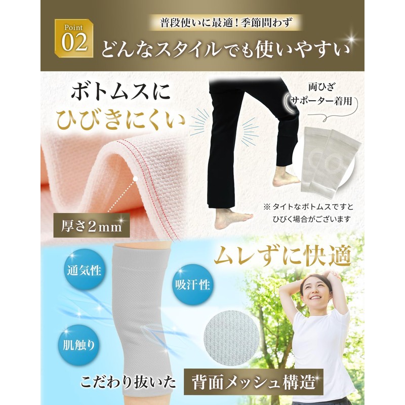 - 【薄手だからどんなシーンにも使いやすい】締め付け感の少ない膝サポーター2枚セット。薄手で目立たないデザインのため、日常生活からスポーツシーンまで厚み2mmと比較的薄手のため目立たず着用でき、温効果もあるためひざ用ウォーマーとしてもご使用いただけます。誰でも使えるユニセックスデザイン。選べるカラーはブラック、ベージュ、グレーで、どんなスタイルにもマッチします