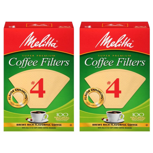 Melitta #4 Coffee Filters, Natural Brown, 2 Pack of 100 Filters.