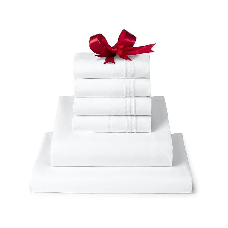 Mellanni Queen Sheet Set - 6-Piece Iconic Collection Bedding, (Including 4 Pillowcases), 16-Inch Deep Pocket, Easy Care, Extra Soft, Cooling Sheets, Brushed Microfiber - White