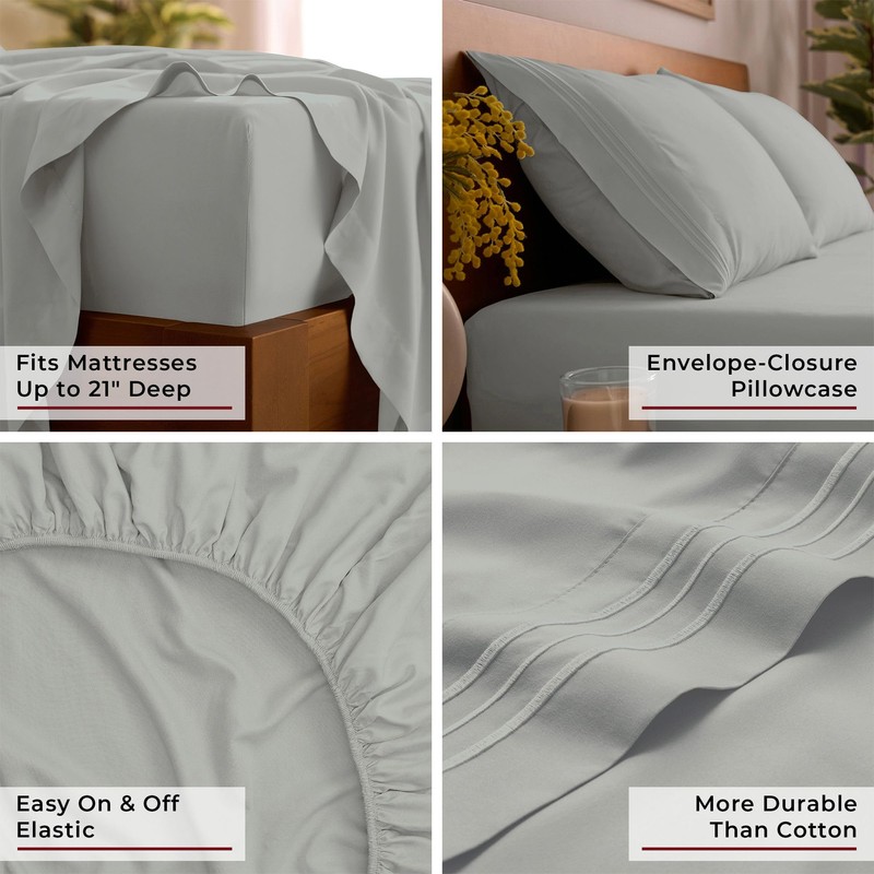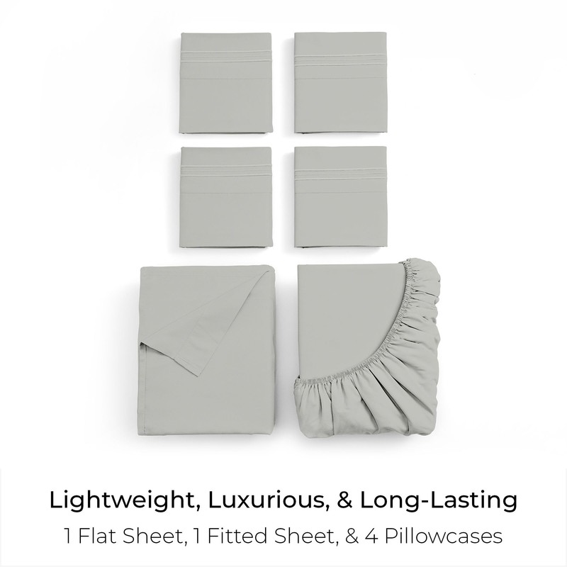- Complete 6-Piece Queen Bedding Set - Includes 1 Fitted Sheet (80"x60"x21"), 1 Flat Sheet (102"x90"), & 4 Pillowcases (20"x30") - all crafted from double-brushed microfiber for an ultra-soft feel. Temperature-regulating to keep you cozy in winter and cool in summer.