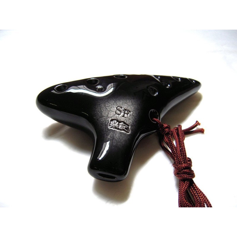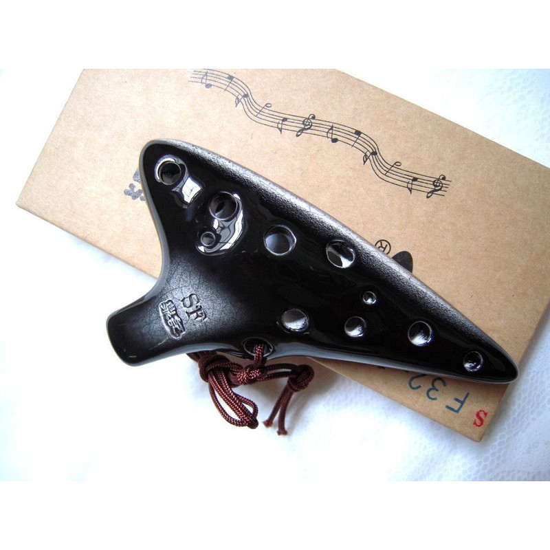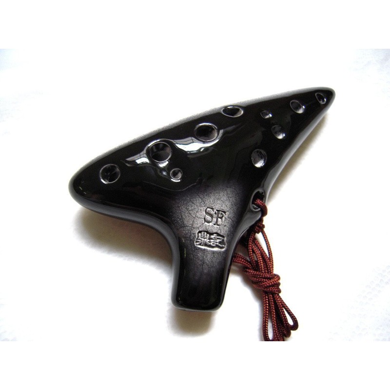 Melodious Soprano F 12 Holes Ceramic Ocarina - Easy to Learn, Good for Beginner & Great Gift. Linn's Arts! (Black Straight Diamond)