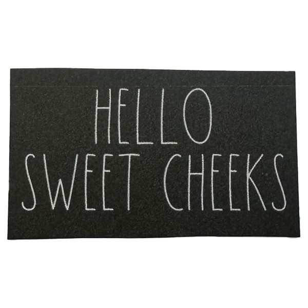 Melody Jane Dolls House Bath Mat Hello Sweet Cheeks Black White Bathroom Rug Printed Card