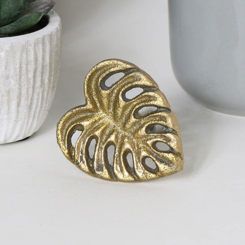 - This Gold Monstera Leaf Drawer Knob is a great way to create a fresh new look to furniture and cupboard doors and drawers. Stunning gold finish in the shape of a leaf.