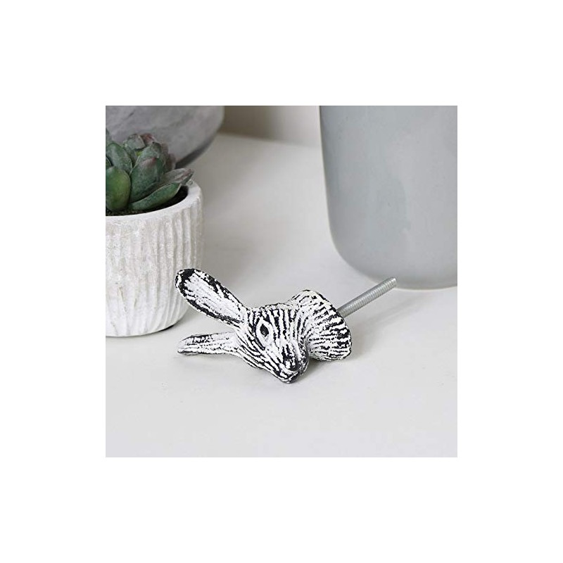This White Rabbit Head Drawer Knob is a simple yet striking way to update your furniture, cupboard or doors. Made of metal, this has a classic rabbit head design and comes with a distressed white painted finish.