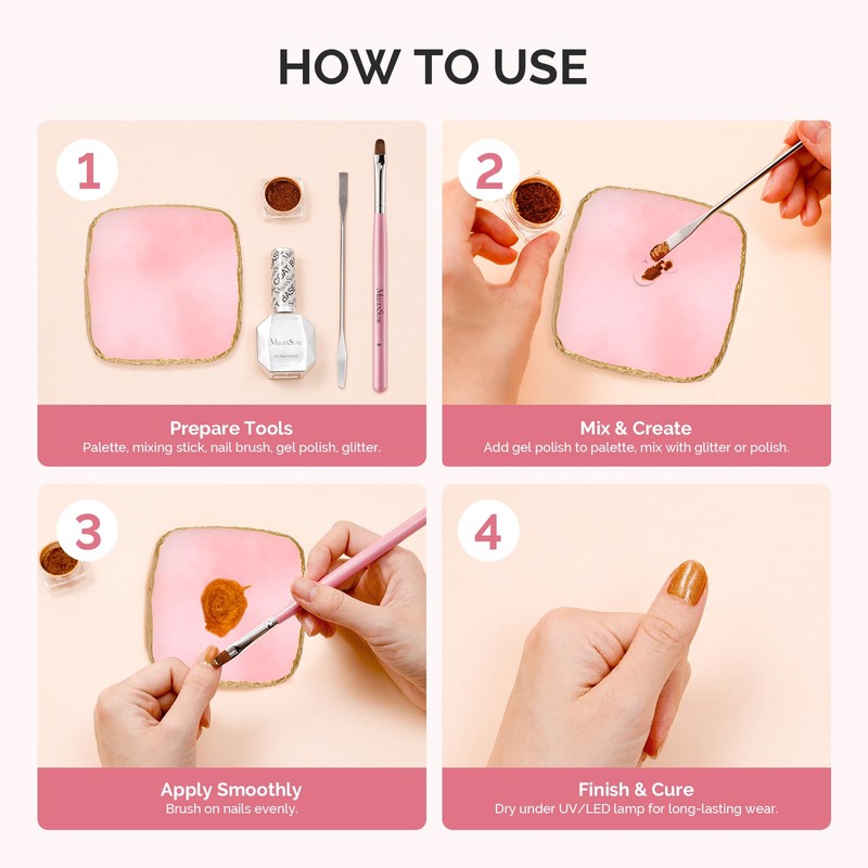 • 【Multi-Purpose Use】Ideal for blending nail polishes, acrylic gels, pigments, and various makeup products such as eyeshadows, lipsticks, and concealers. Also works as a stylish display tray for finished nail art or as a compact surface for painting and crafting.