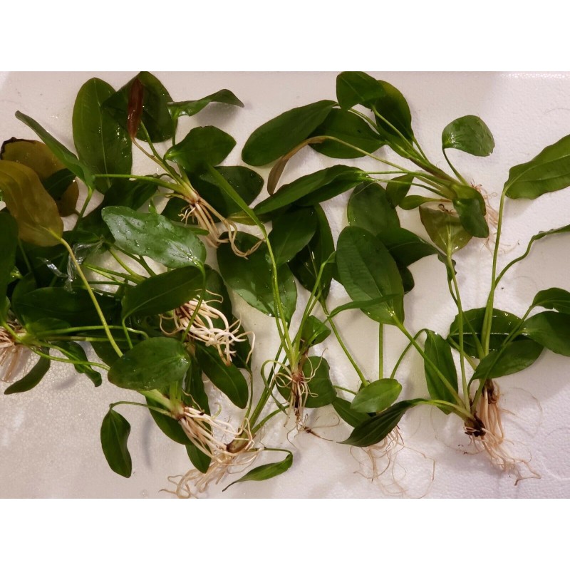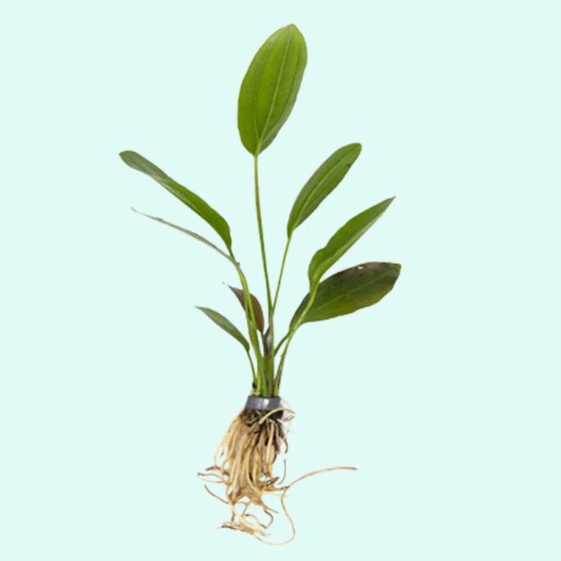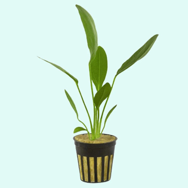 The Melon Sword is a member of the plant group known as Rosettes, which are known for their extremely short stem axes and for the way their leaves grow upward from the base of the plant. This plant can grow up to 20 inches in height with the proper lighting & water quality. Approximate shipping size of our Melon Swords ranges from 4 to 8 inches tall. The plant ships a as bare root clump. As with all our plants (besides tissue cultures), our Melon Swords are kept in water in a dedicated tank rather than plastic packaging, which means your plant will arrive much healthier.