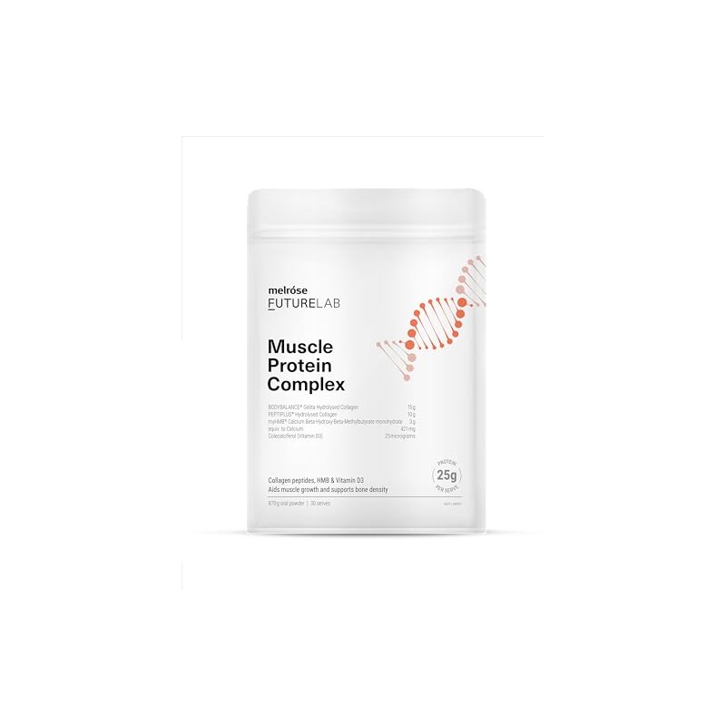 - Melrose FutureLab Muscle Protein Complex offers a comprehensive blend containing 25 g of protein, including 15 g of the clinically trialed Gelita BodyBalance Collagen peptides, as well as 10 g of Gelita PeptiPlus Collagen Protein, which help maintain lean body mass in ageing individuals. Collagen is an important protein source, providing the nutrients required for the many processes that take place in muscles and cells.