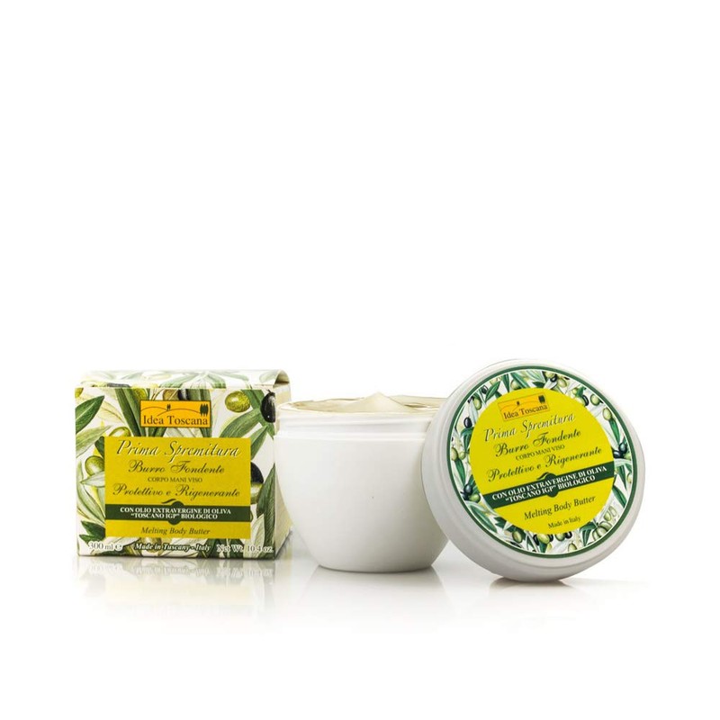 - The product is suitable for all skin types. It is rich in Organic Toscano PGI Extra Virgin Olive Oil, Shea butter and Cocoa butter in order to restore the skin's correct tone and elasticity.