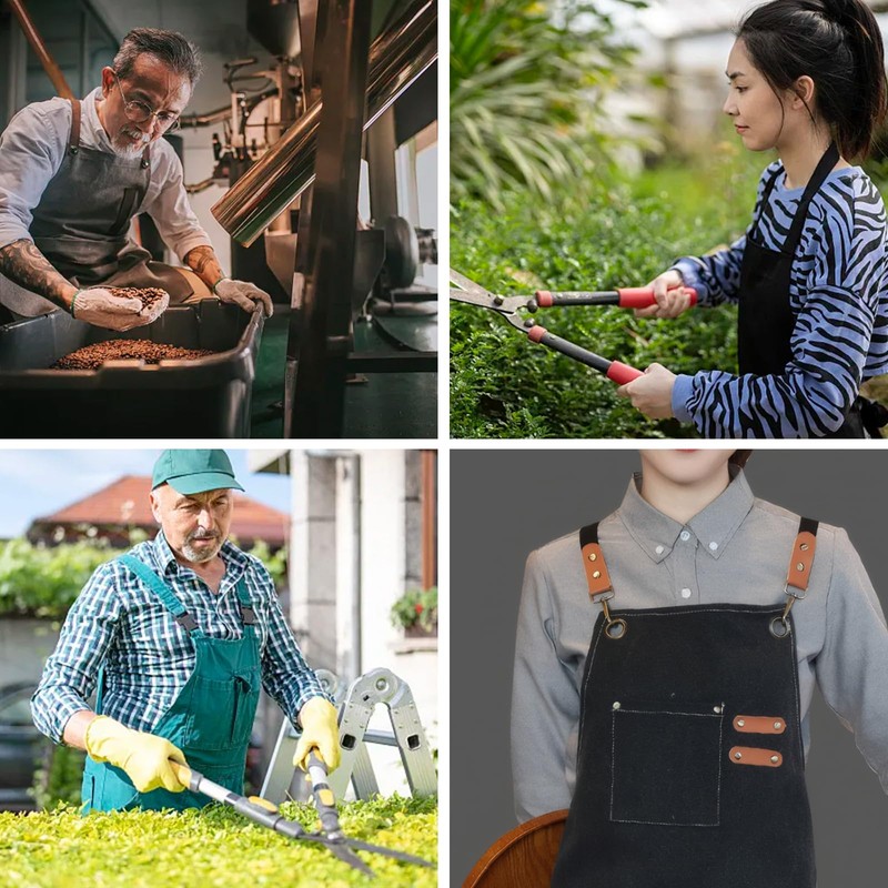 • 【スタイリッシュで実用的】:落ち着いたブラウンカラーで、厚手キャンバスエプロンの丈夫さを活かしたデザイン。カフェスタッフ、ガーデニング、DIY職人、シェフなどさまざまな職業に適用。作業エプロン 大きめサイズで実用性も抜群!