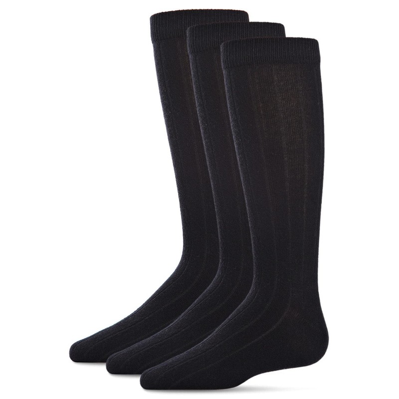 MeMoi Boy's 3 Pair Pack Basic Cotton Blend Ribbed Crew Socks Black 8-9