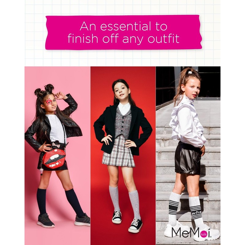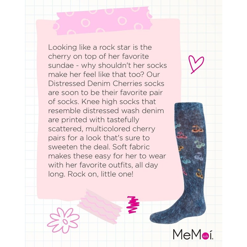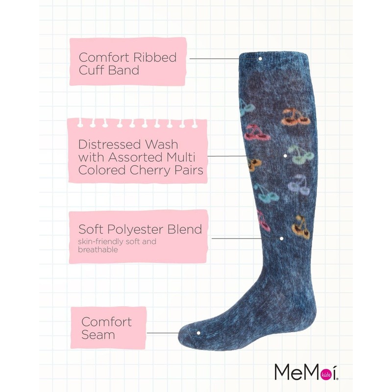 MeMoi Distressed Wash Denim Cherries Girls Knee High Sock Blue 12