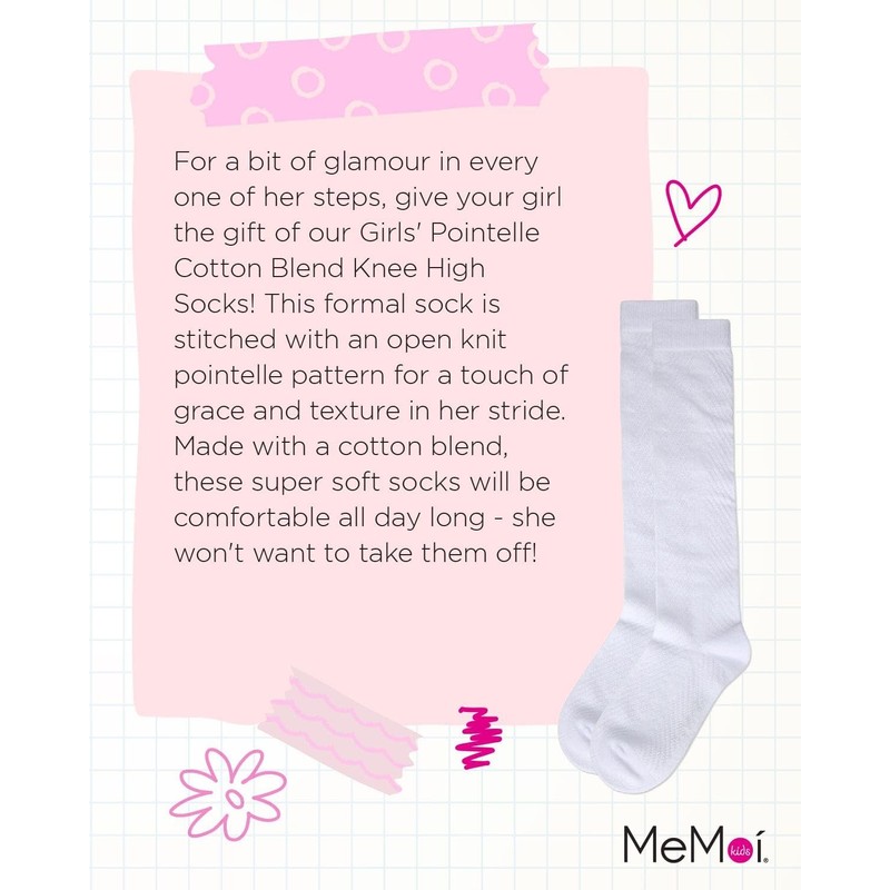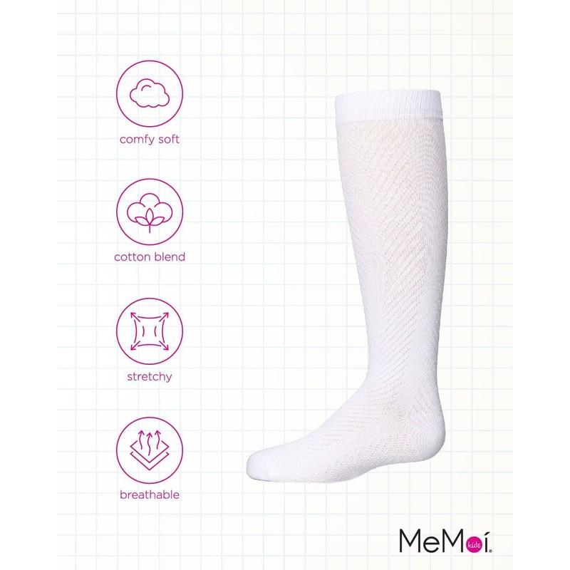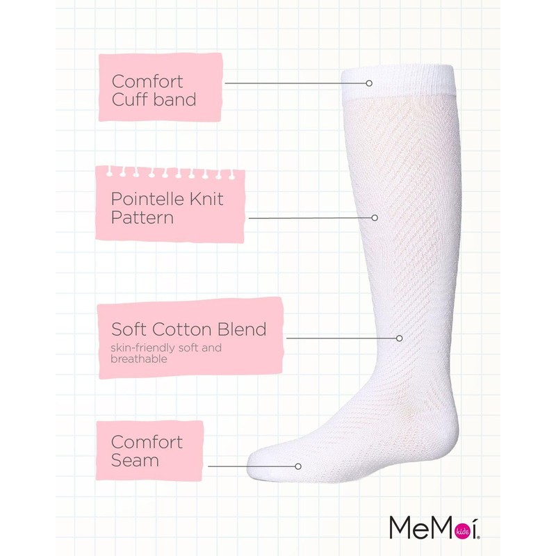 MeMoi Girls' Pointelle Cotton Blend Knee High Sock White 12