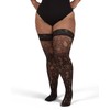 MeMoi Women's Net Swirl-Pattern Lace-Top Plus Size Thigh High Stockings Black 1X-2X