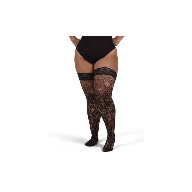Go from desk to dinner to dancing in these luxurious plus-size thigh highs. They fit like a dream and stay up nicely all day, thanks to their sleek knit-in stretch and non-binding silicone tops. Plus, they flatter you down to your toes with their flirty, feminine lace and breathable open-work mesh.
